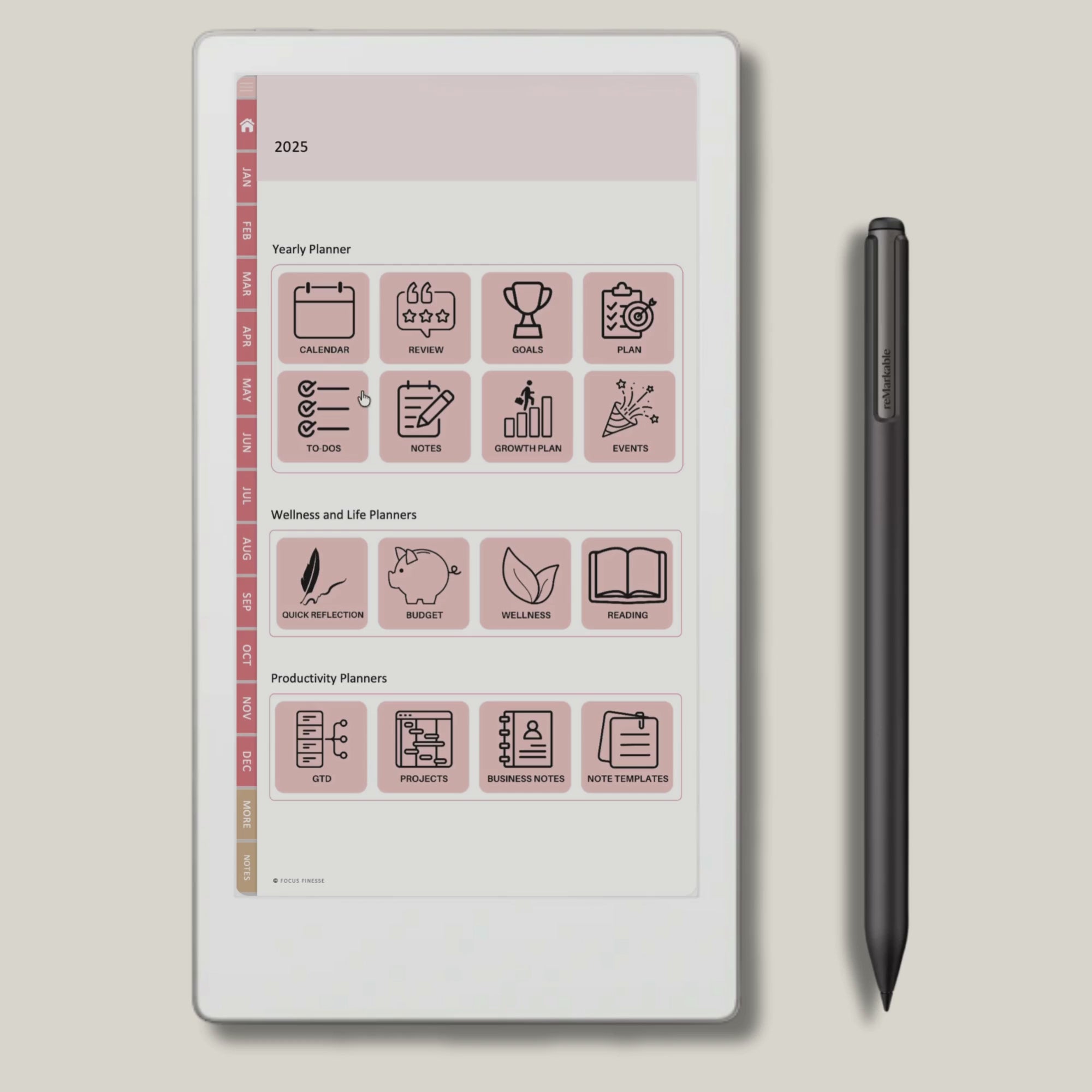 This Digital Download is an Ultimate Planner for 2025 & 2026 specifically tailored for Remarkable Paper Pro Move. We design this planner with Neurocognitive-specific considerations in mind, crafting minimalistic layouts and optimal designs that undergo rigorous testing. This tailored approach enhances user consistency in planner utilization while maximizing flexibility.